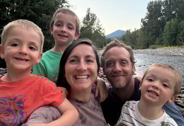When our first son was born, I stepped away from the classroom to stay home with him. Our family later moved to Portland, Oregon, where we welcomed two more boys and became a family of five. During my years at home, I remained deeply involved in my children’s learning through a cooperative preschool, where I volunteered regularly in the classroom and served on the board as President and Membership. I also gained valuable inspiration from our time in a nature-based school, where I saw firsthand the power of unstructured outdoor play and exploration.